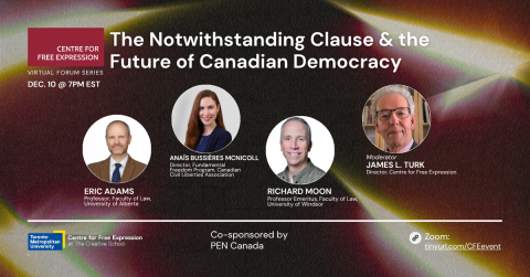 The Charter of Rights and Freedoms made Canada a constitutional democracy in which unelected courts, not elected legislatures, have the final say about rights and freedoms. Yet Section 33 (the Notwithstanding Clause) was built in to let governments override the courts on certain matters. That clause has been contentious ever since – never more than now when it is increasingly being invoked to deny key democratic freedoms and human rights. Join a panel of leading legal experts to explore what’s a stake, what options are possible, and what they would mean for the future of Canada’s democracy.